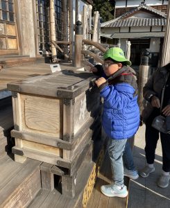 初詣、手を合わせてペコっと頭を下げる、高学年の子はさすがです!低学年の子も見てまねて出来るようになってきたね。昨年はお寺の石庭を走ってしまった子も、今年は落ち着いていられました。成長を感じます(#^.^#) いろんなことがうまくいくといいけれど、そうはいかない時もある。なんとかなるさー(なんくるないさー)今年もみんな元気で良い一年になりますように(^^♪