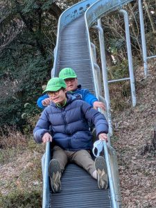 すべり台は楽しいけど、、、 頂上まで上るのがたいへん😟