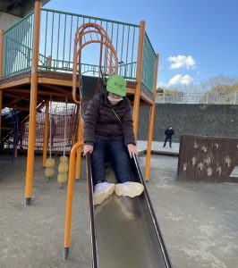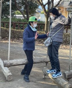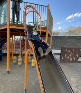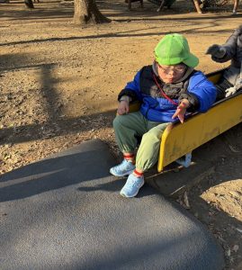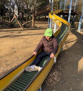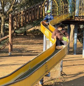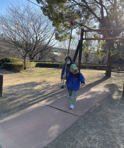 お天気はいいけれど、とにかく寒くて空気が冷たい~🥶それでも子ども達は元気いっぱい!おでかけが大好きです。公園での遊具も最初は怖がっていても、何度か挑戦するうちに、うまくバランスをとったり、滑り台も足を広げてスピードが出ないように調整したりしていました。楽しかったね(^_-)-☆