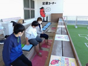 昼食後は、富士山を眺めながら足湯に浸かってリラックス